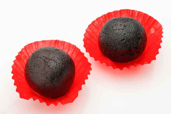 Soft darker fried dumplings made of chhana, cardamom and dipped in sugar syrup