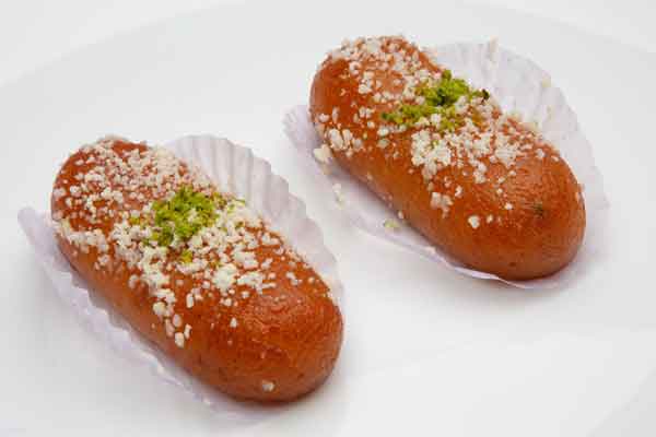 The cylindrical sweets are made of chhana and khoya coated in castor sugar and deep-fried before being soaked in sugar syrup.